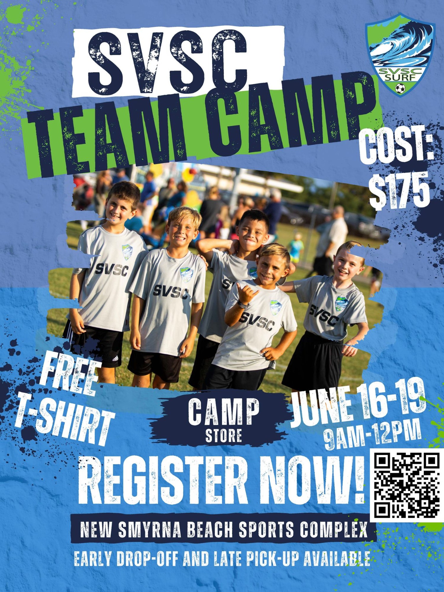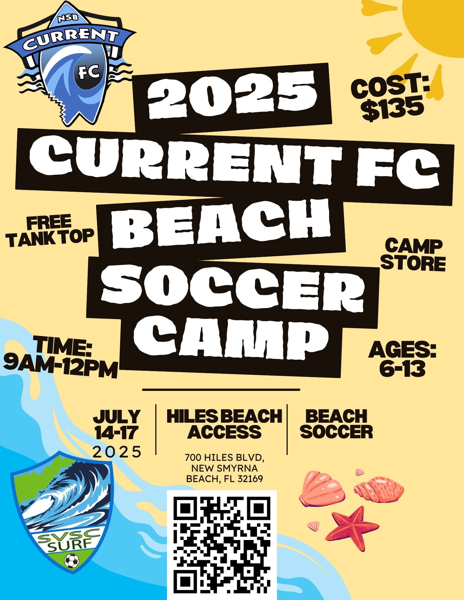 SVSC Team & Beach Camp runs from 9:00 am to 12:00 pm. We offer Early Drop-Off starting at 8:00 am and Late Pick-Up until 1:00 pm for an additional $50 each. Staff will supervise players during these times.